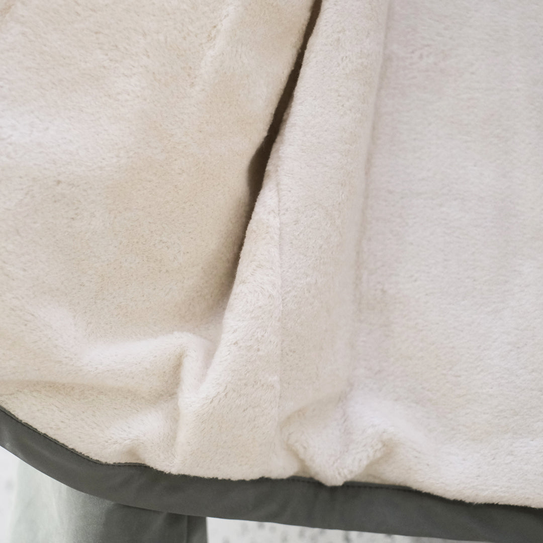 宇宙服にも使用される表地のポリエチレン素材は、低温に強く、防水・防湿性に優れています。裏地には綿100%のフリース素材を使用し、高い保温性を実現しています。