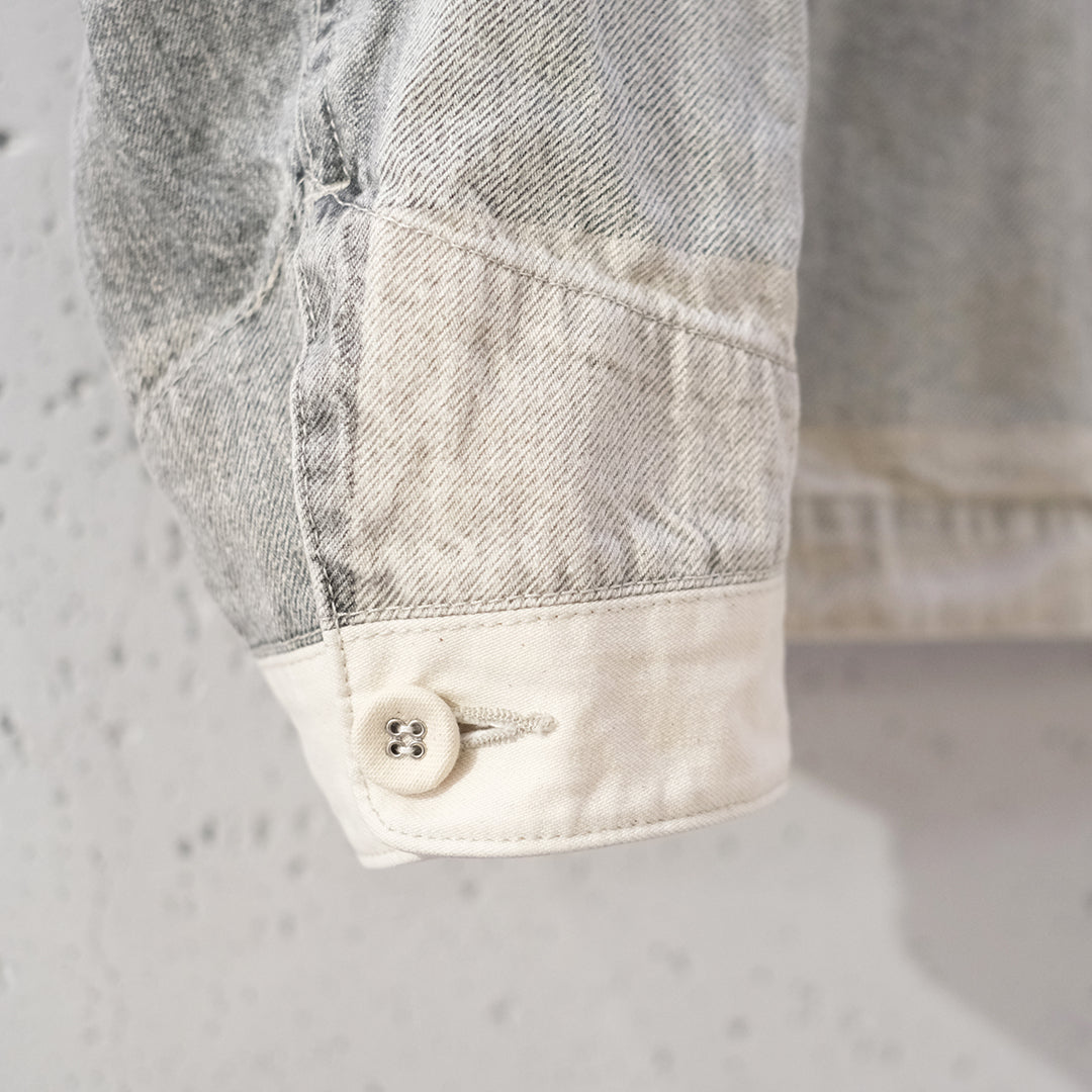着用を重ねることでプリントが徐々に薄れ、次第に生機本来の風合いへと戻っていく、時間の経過とともに変化を楽しめる一着です。