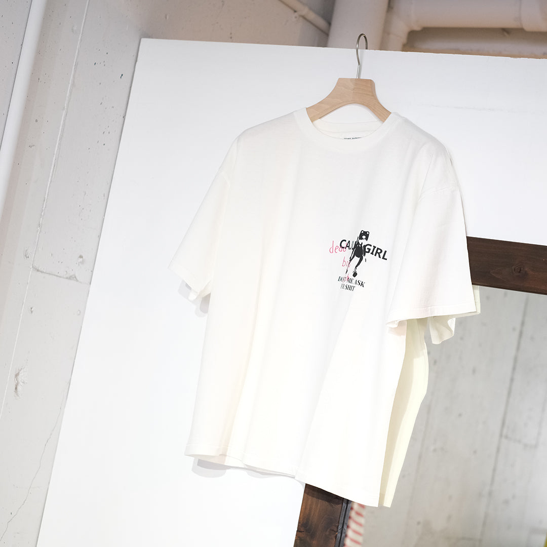 着丈は短く身幅は広めで夏場に1枚でラフに着られるシルエット。架空のバンドTやスーベニアTを意識したようなポップ感あるデザインに、オリジナルの丸胴ボディに裾や袖は天地引きステッチでクラシックな表情もあり、なんとも絶妙なバランスに仕上がっています。