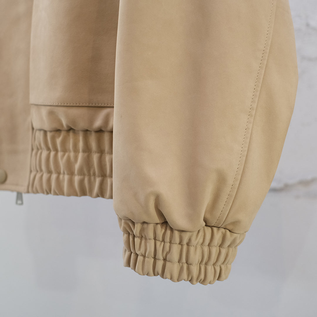 表面の滑らかでシルキーなタッチと特有のハリ感を併せ持つカウヌバックで制作したphebusのレザーブルゾンが届きました。