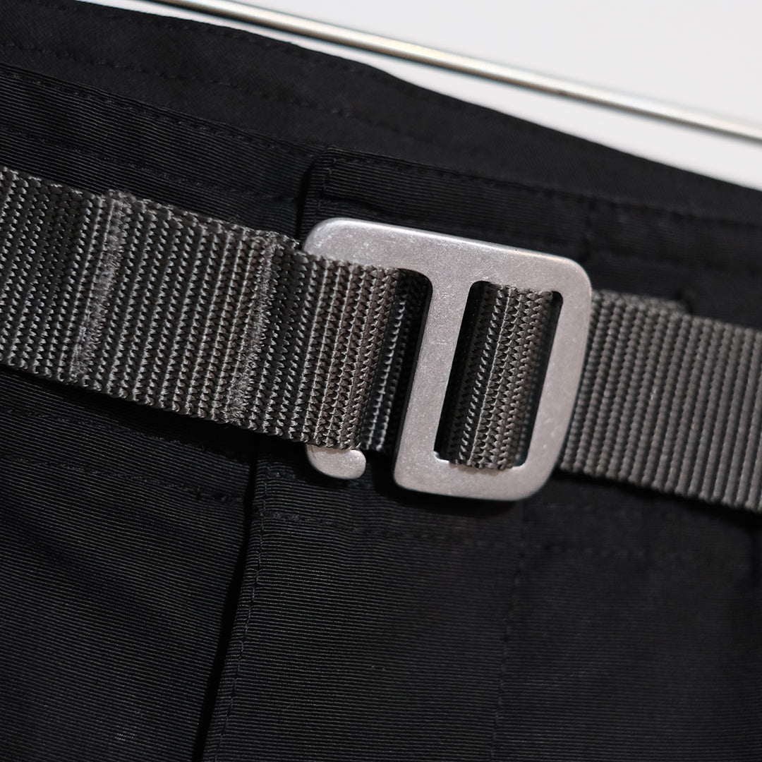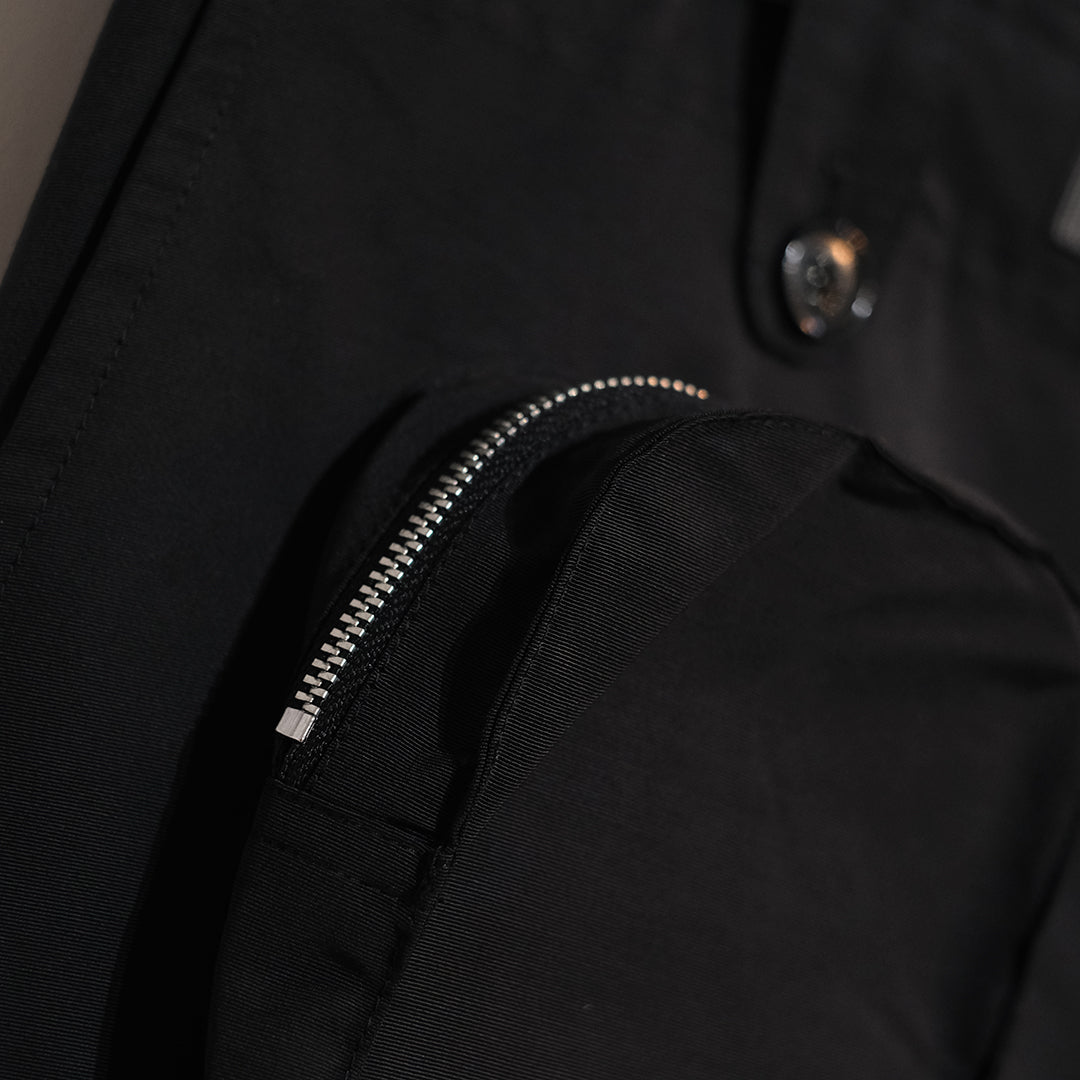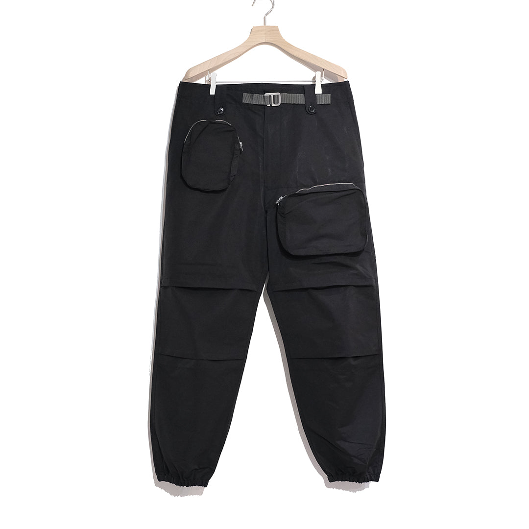 1950〜60sのイギリス軍のコマンドトラウザーのシルエットやポケット位置をベースに、同素材のジャケットで作ったマルチポケットをフロントに配備した新しい形のテクニカルカーゴパンツ。アウトドアでも使いやすいようコーデュラと綿60%を組成することで、摩耗強度や耐火性、撥水加工に優れた素材を使用しています。多彩なポケットとシルエットが特徴的な、スタイリングの主役にも引き立て役にもなりうるアイテムとしてお勧めいたします。