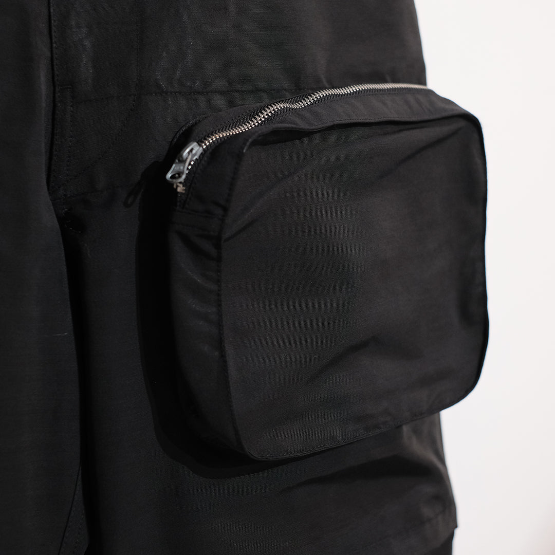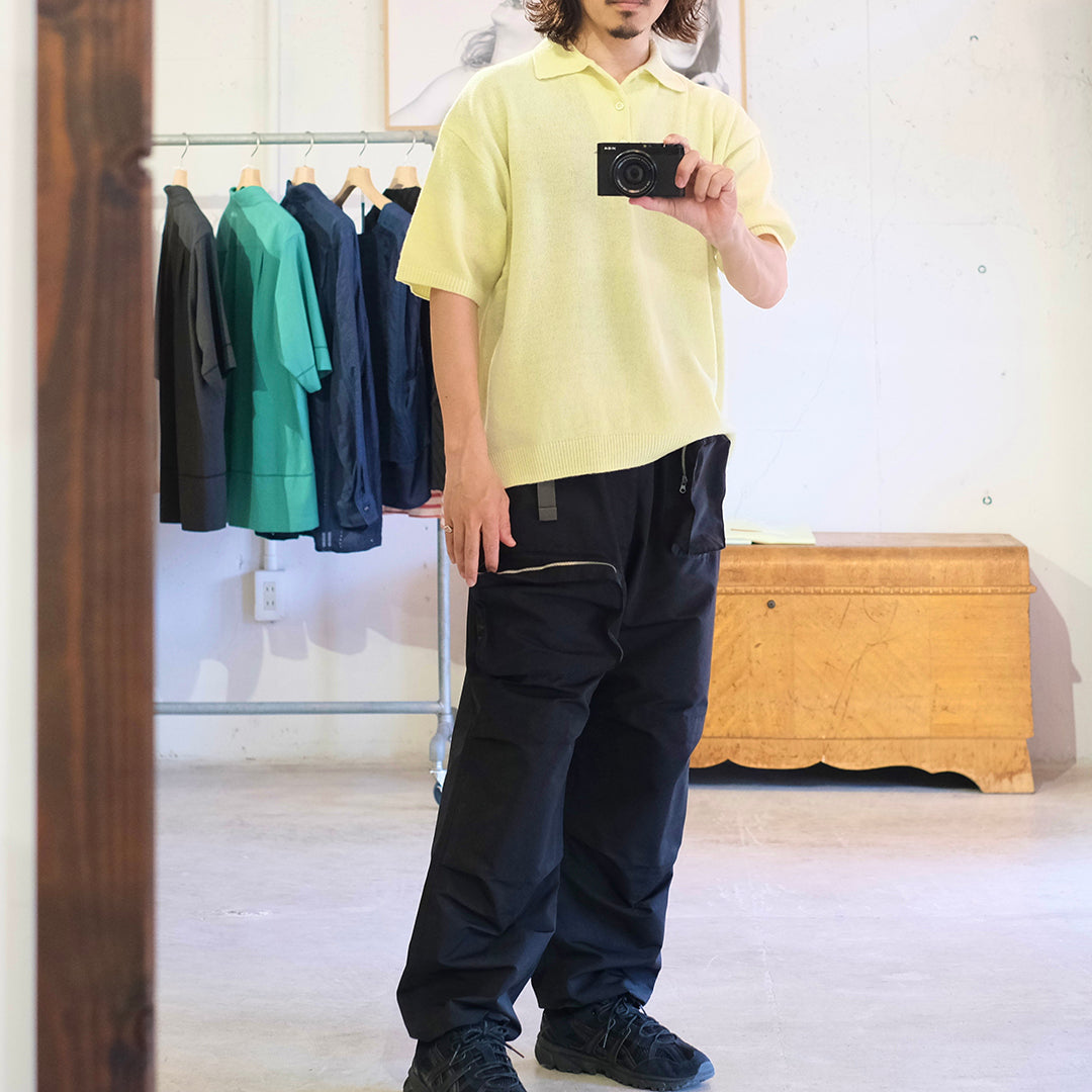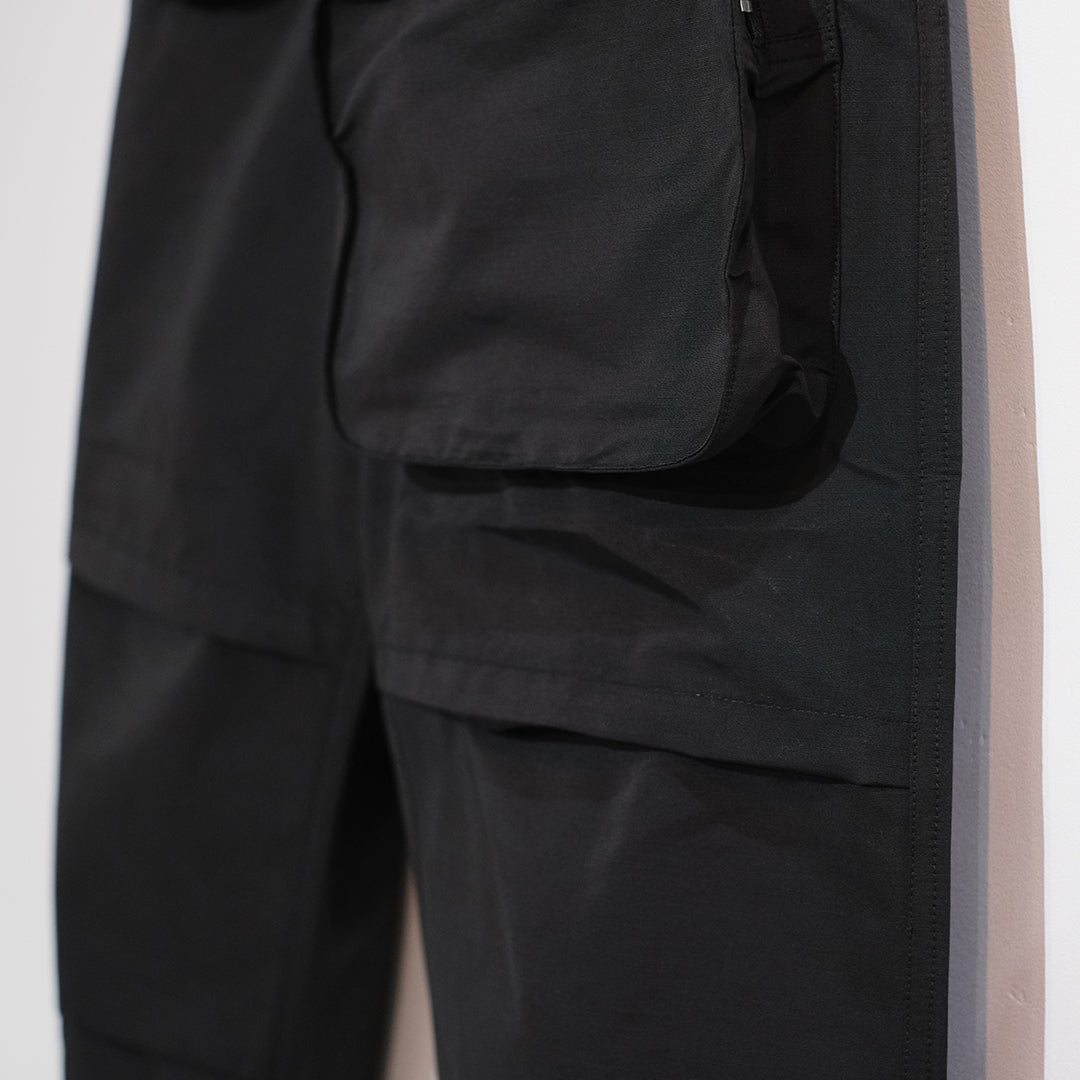 1950〜60sのイギリス軍のコマンドトラウザーのシルエットやポケット位置をベースに、同素材のジャケットで作ったマルチポケットをフロントに配備した新しい形のテクニカルカーゴパンツ。アウトドアでも使いやすいようコーデュラと綿60%を組成することで、摩耗強度や耐火性、撥水加工に優れた素材を使用しています。多彩なポケットとシルエットが特徴的な、スタイリングの主役にも引き立て役にもなりうるアイテムとしてお勧めいたします。