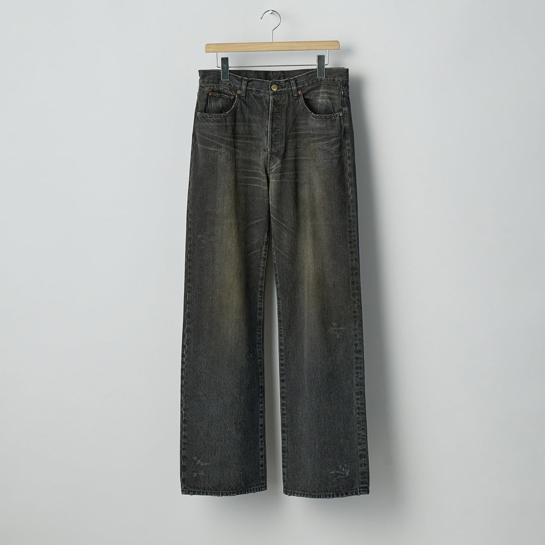 ssstein 25AWより、すっきりとした印象のフレアデニムパンツが入荷しました。ストーンウォッシュ、ブリーチ、オーバーダイ、吹付け、手作業によるダメージ感等様々な加工過程を施し、奥行きのある表情が特徴的です。