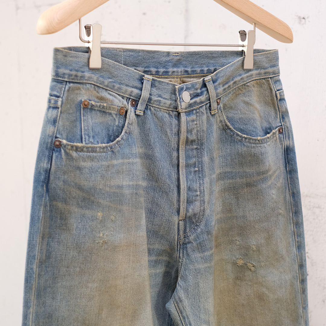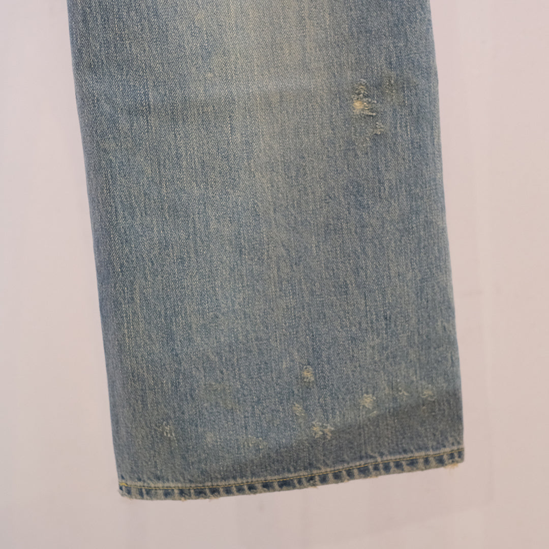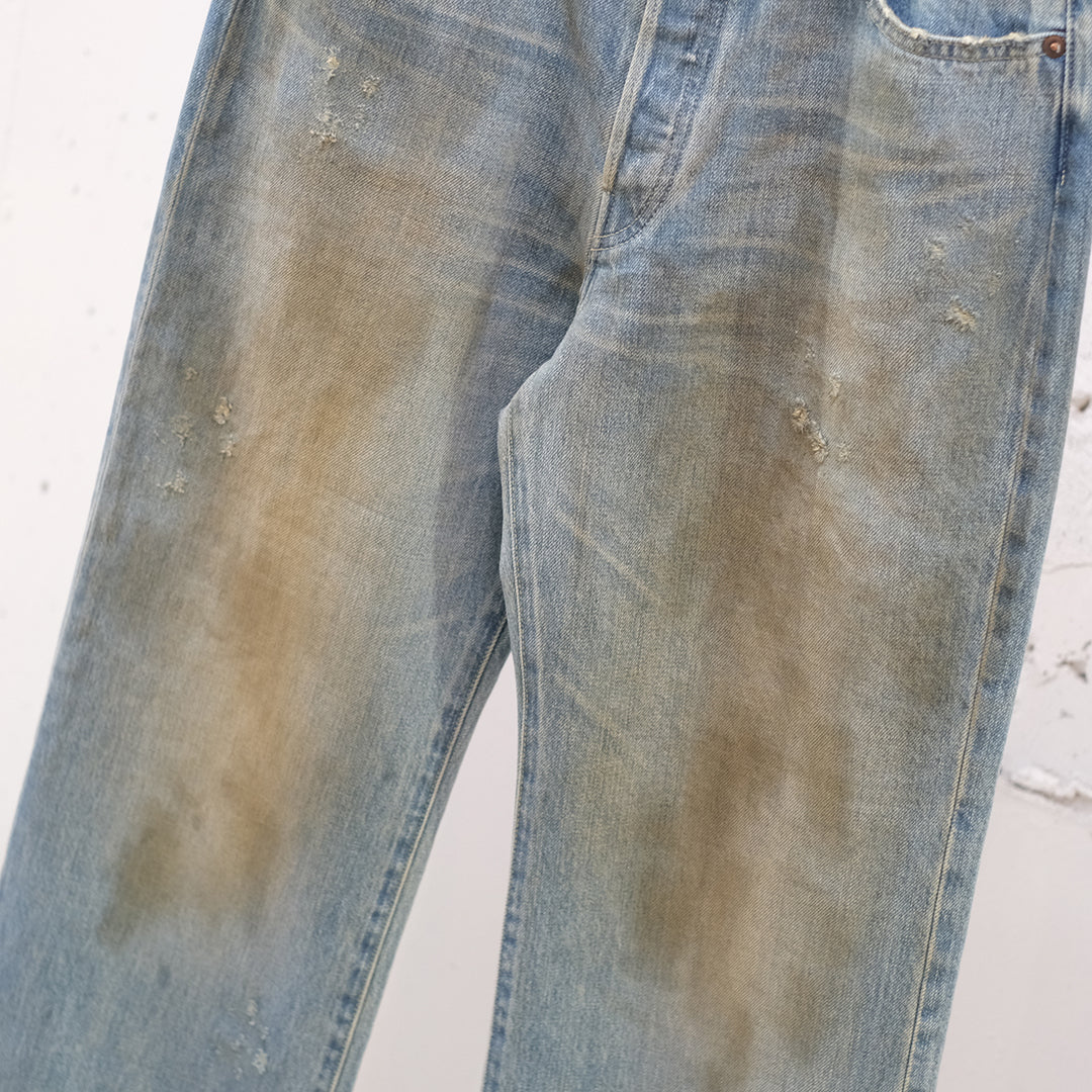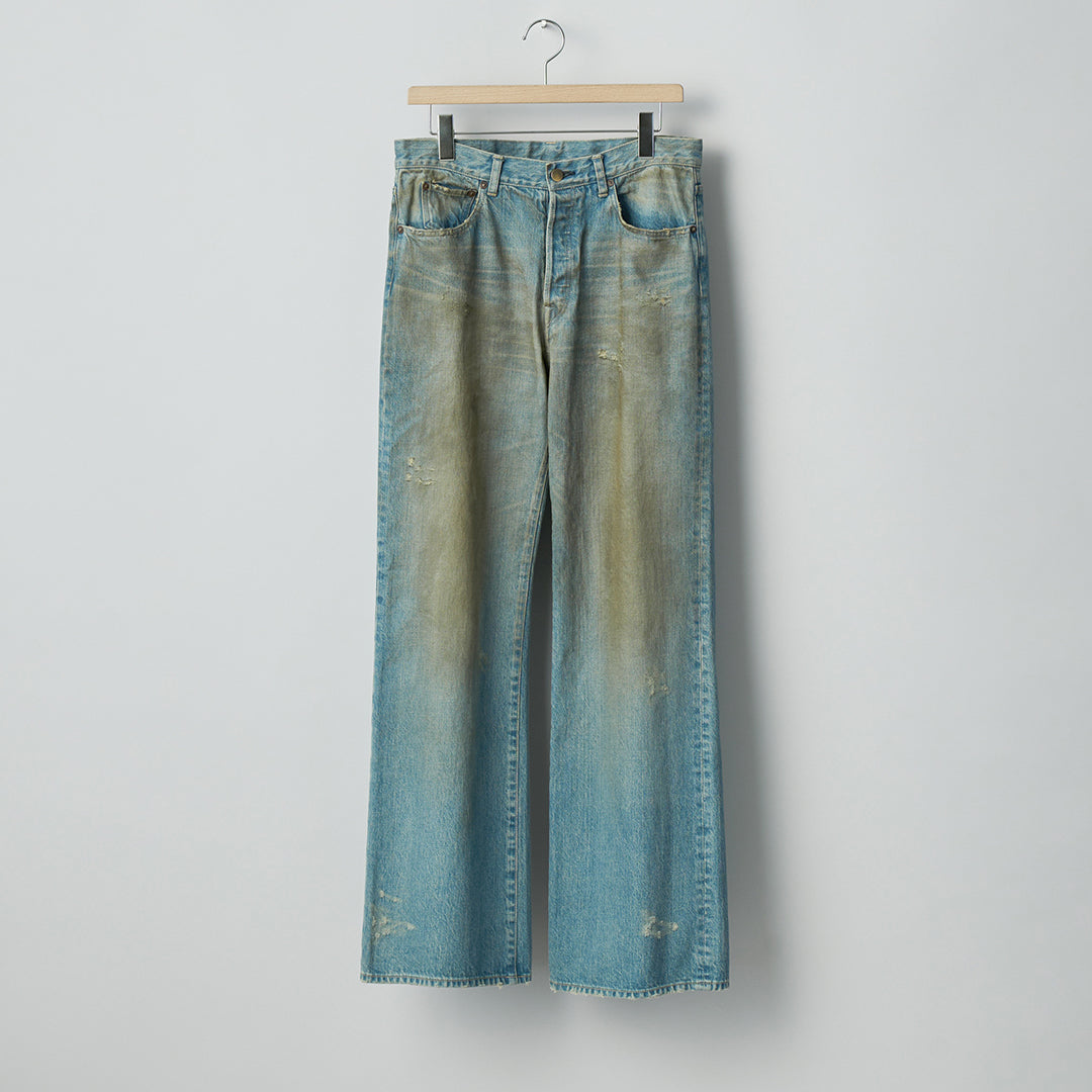 ssstein 25AWより、すっきりとした印象のフレアデニムパンツが入荷しました。ストーンウォッシュ、ブリーチ、オーバーダイ、吹付け、手作業によるダメージ感等様々な加工過程を施し、奥行きのある表情が特徴的です。