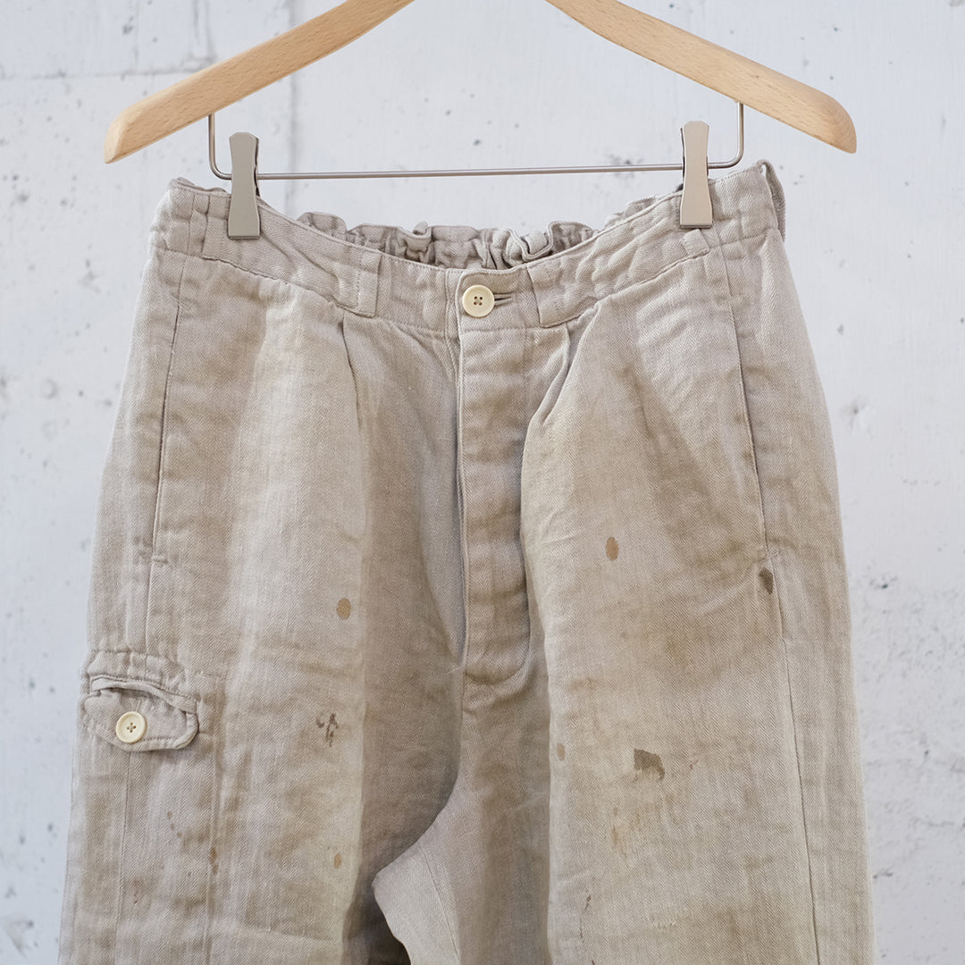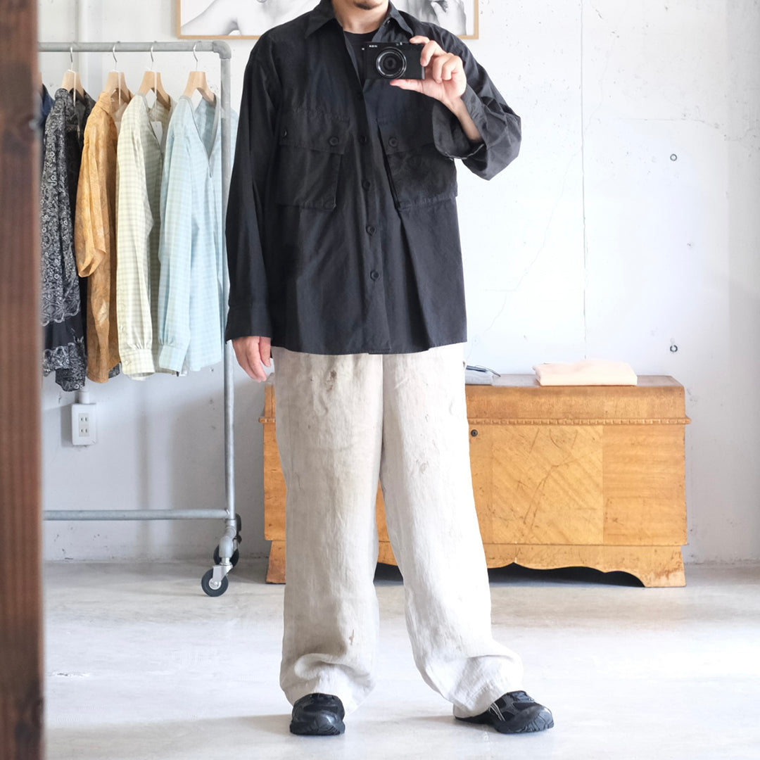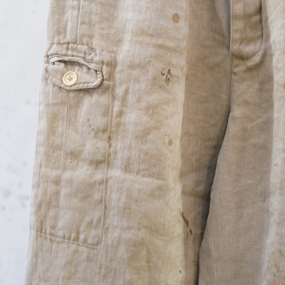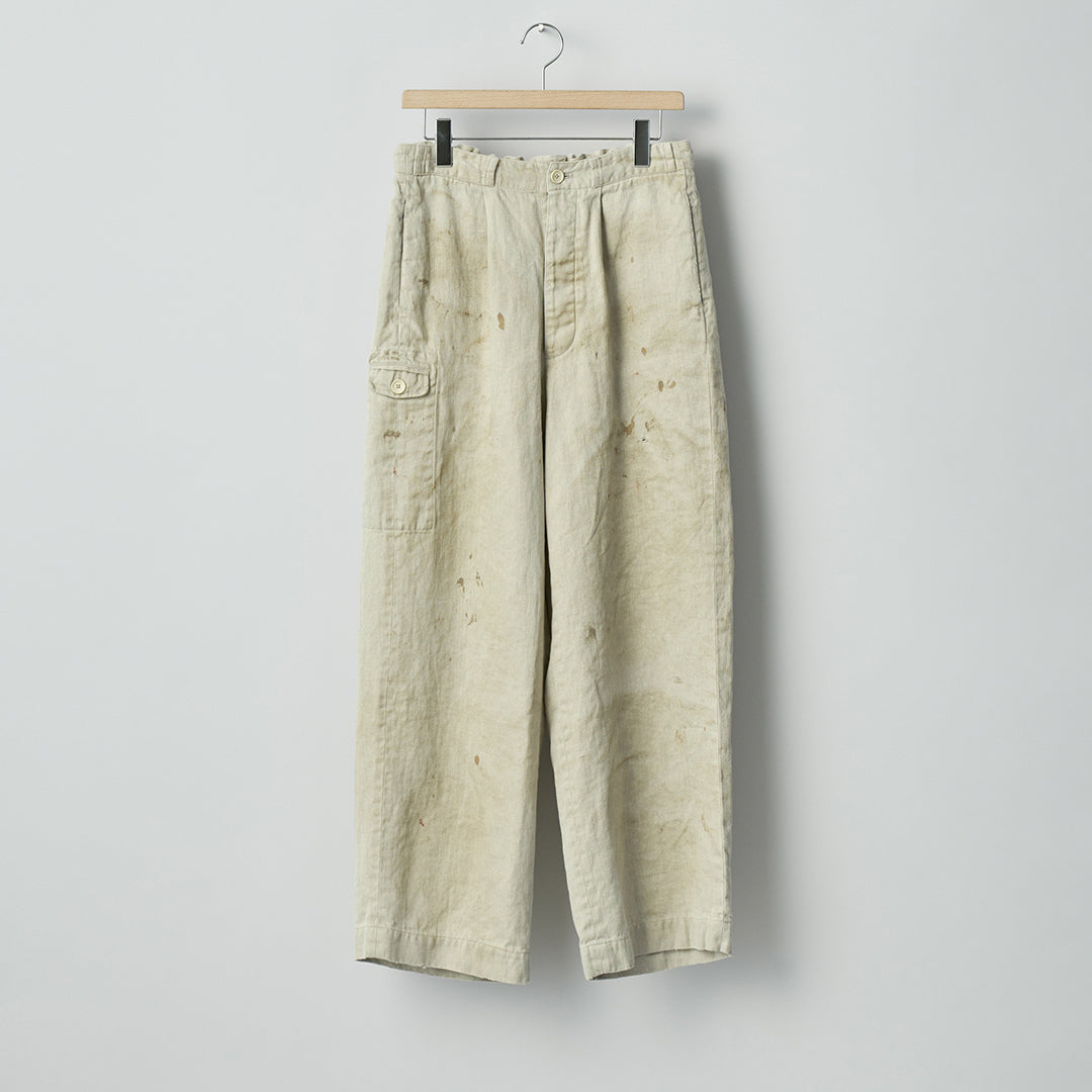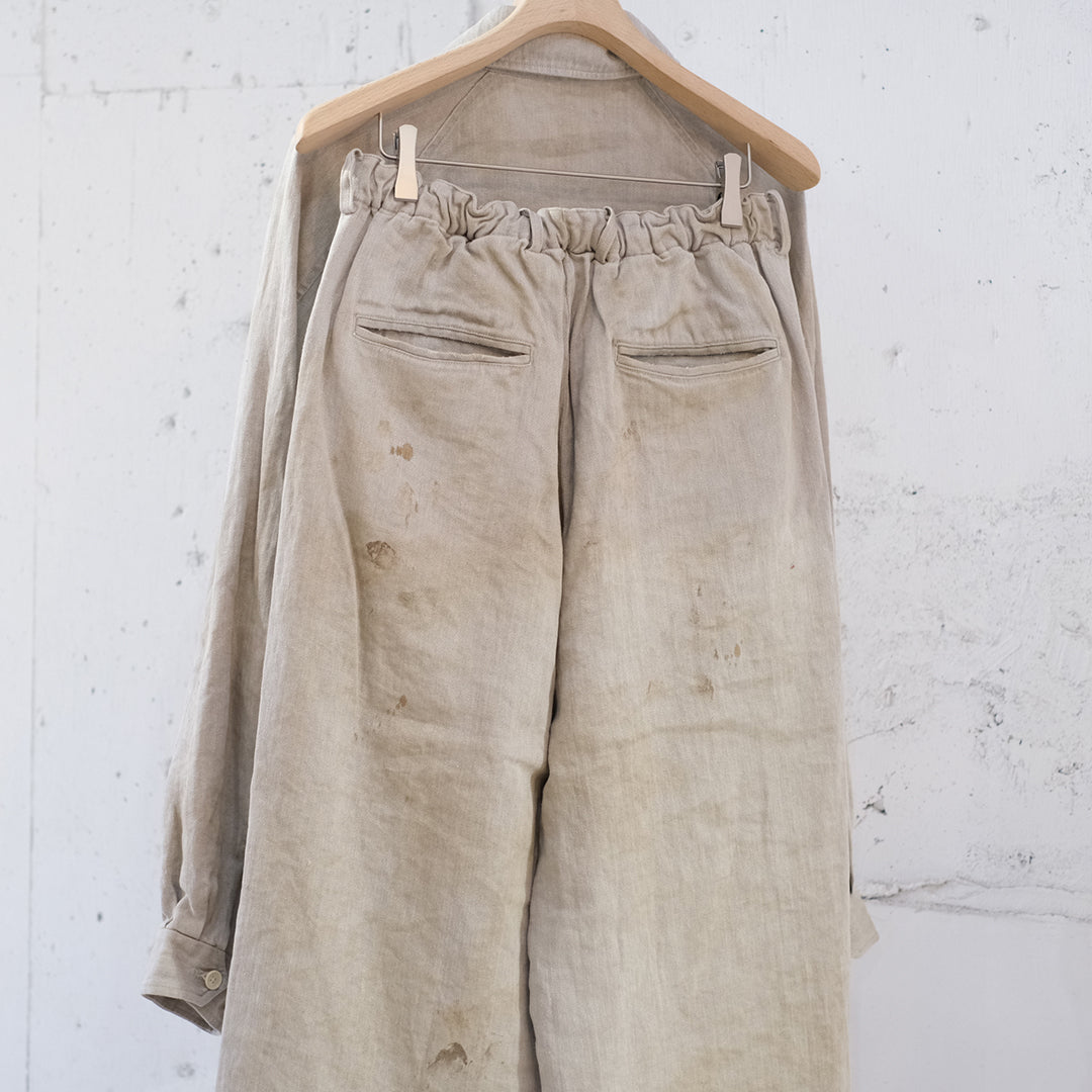 ssstein 25AWより膨らみ感のある25番単糸のヨーロッパリネンを使用し、尾州産地にてゆっくり丁寧に高密度に織り上げたリネンヘリンボーンを使用したワイドイージートラウザーズが入荷しました。