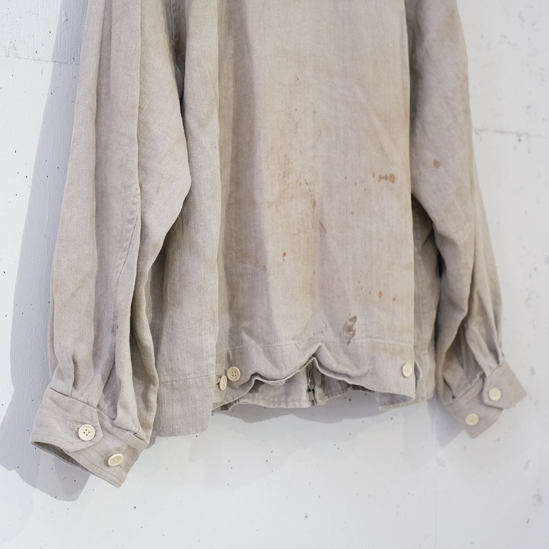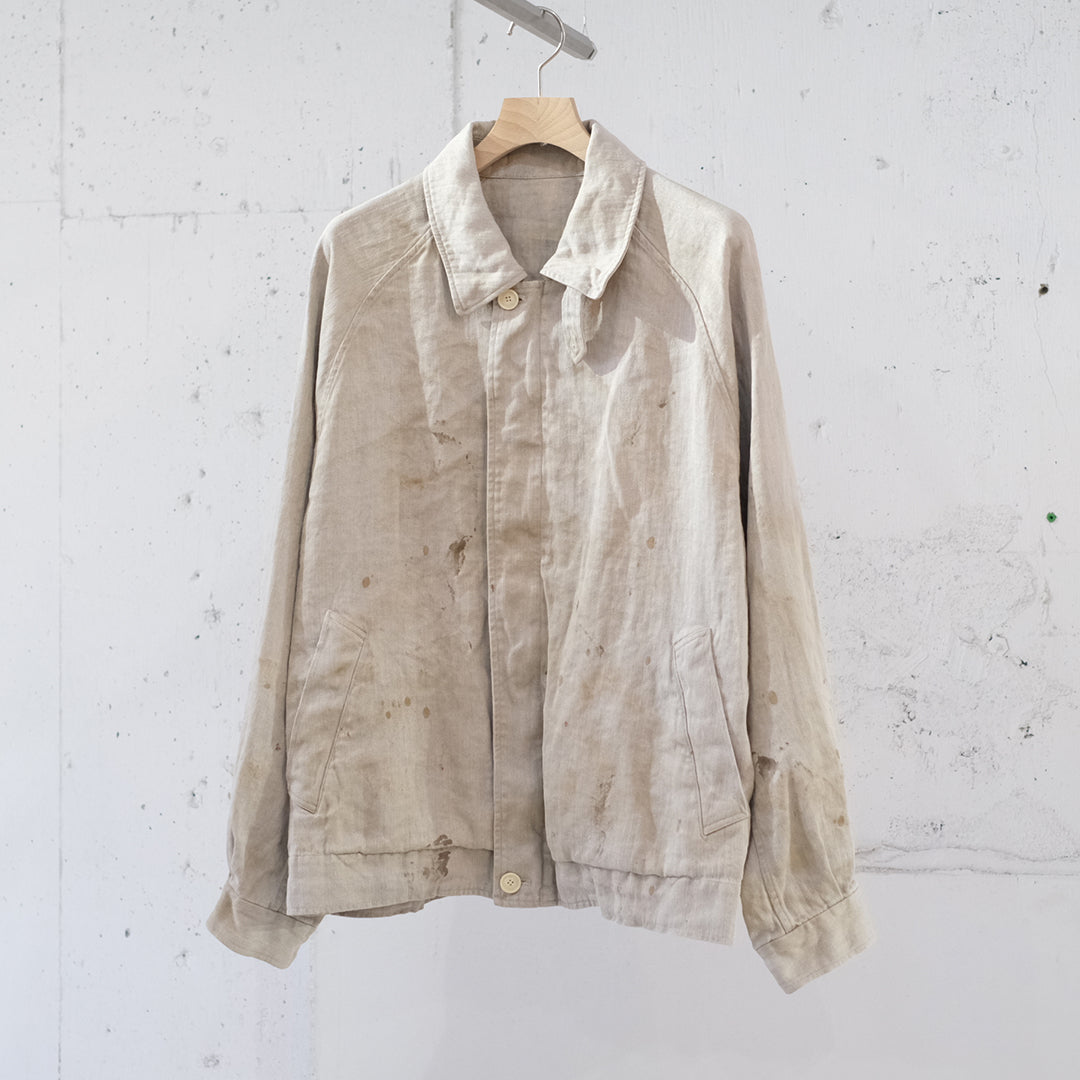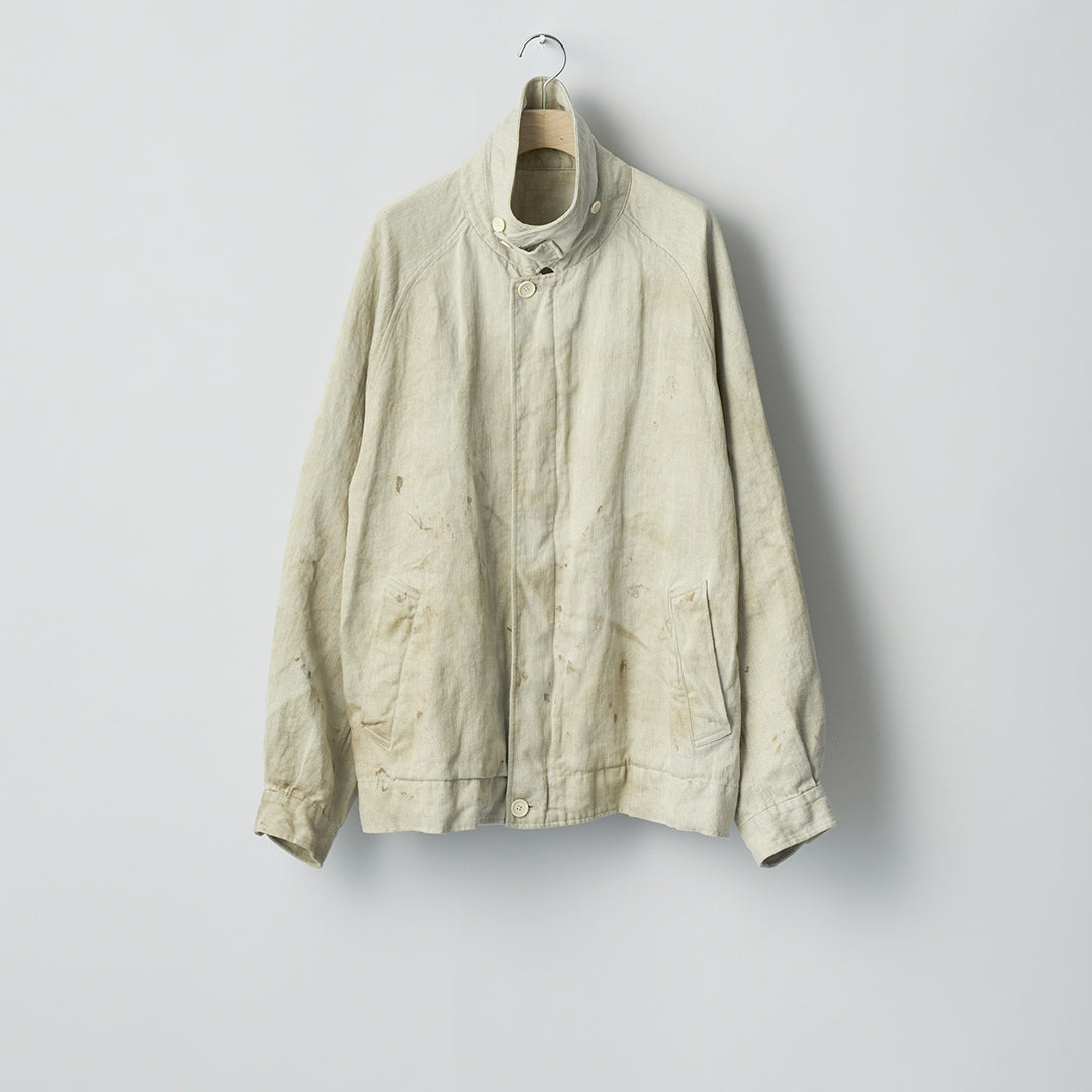 ssstein 25AWより膨らみ感のある25番単糸のヨーロッパリネンを使用し、尾州産地にてゆっくり丁寧に高密度に織り上げたリネンヘリンボーンを使用したジップジャケットが入荷しました。
