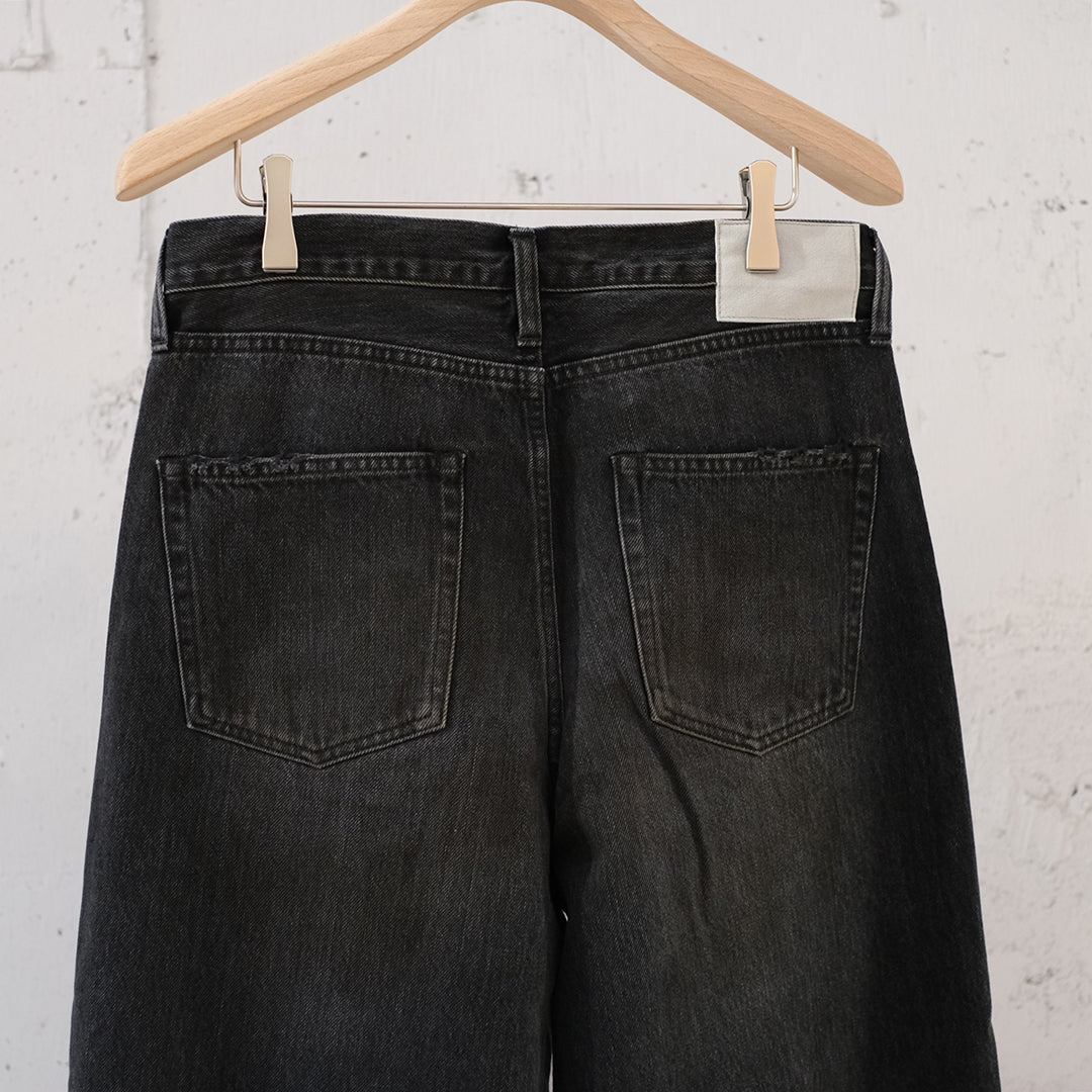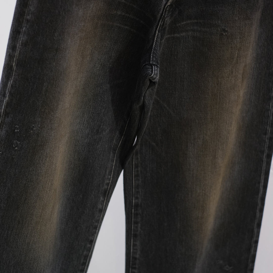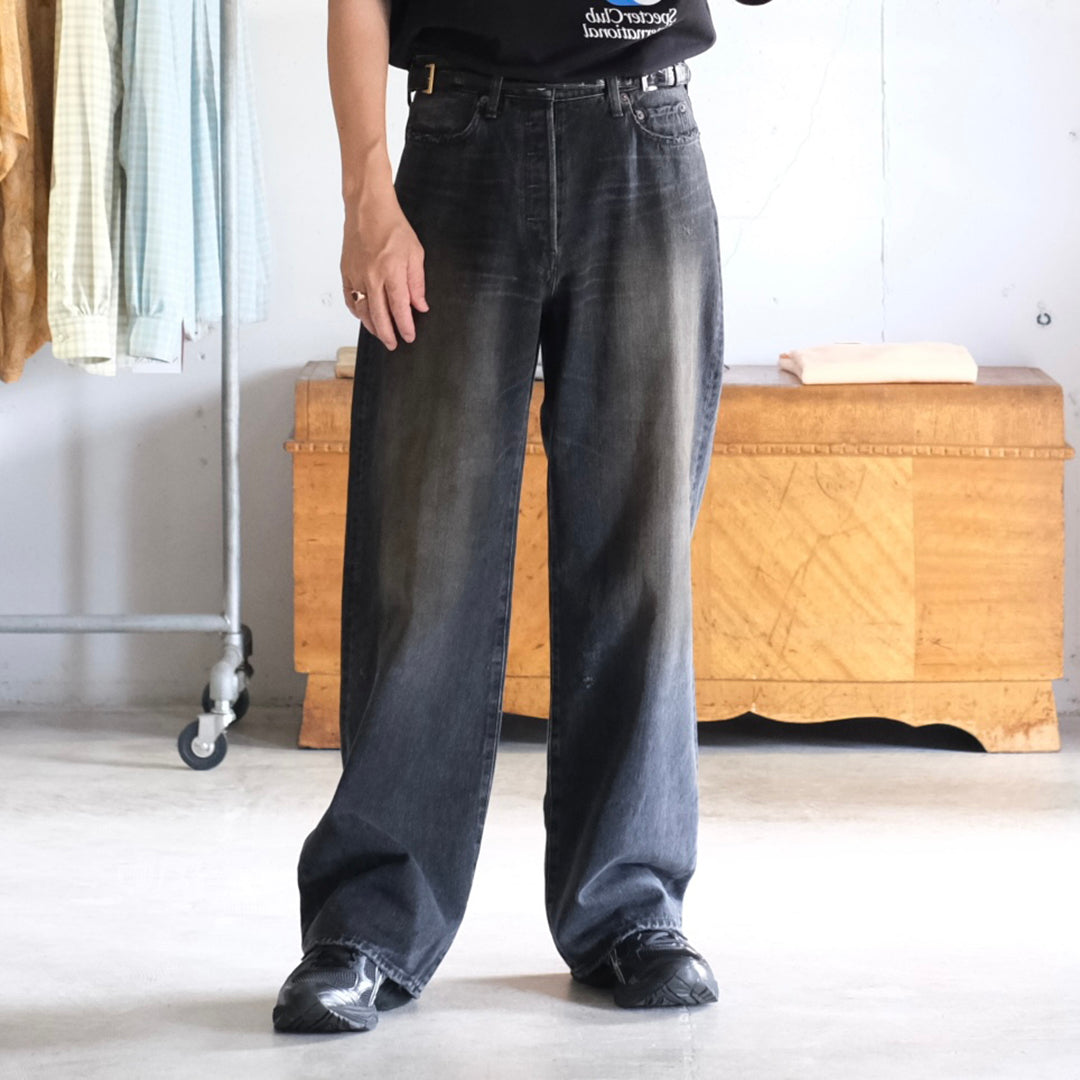 ssstein 25AWより、股上を浅めに設定しゆったりとしたストレートデニムが入荷しました。ストーンウォッシュ、ブリーチ、オーバーダイ、吹付け、手作業によるダメージ感等様々な加工過程を施し、奥行きのある表情が特徴的です。