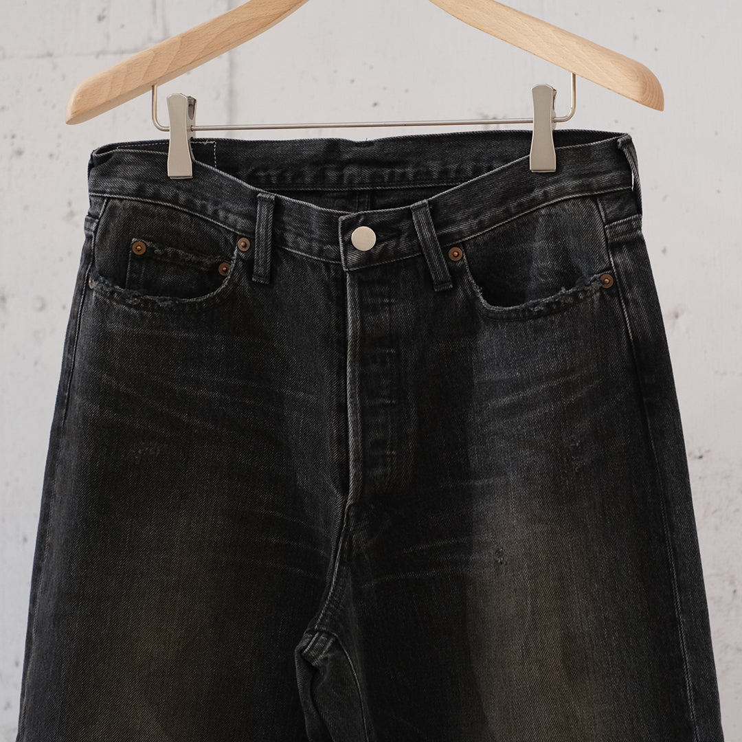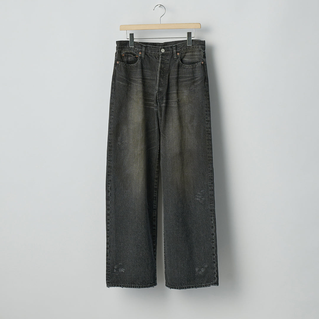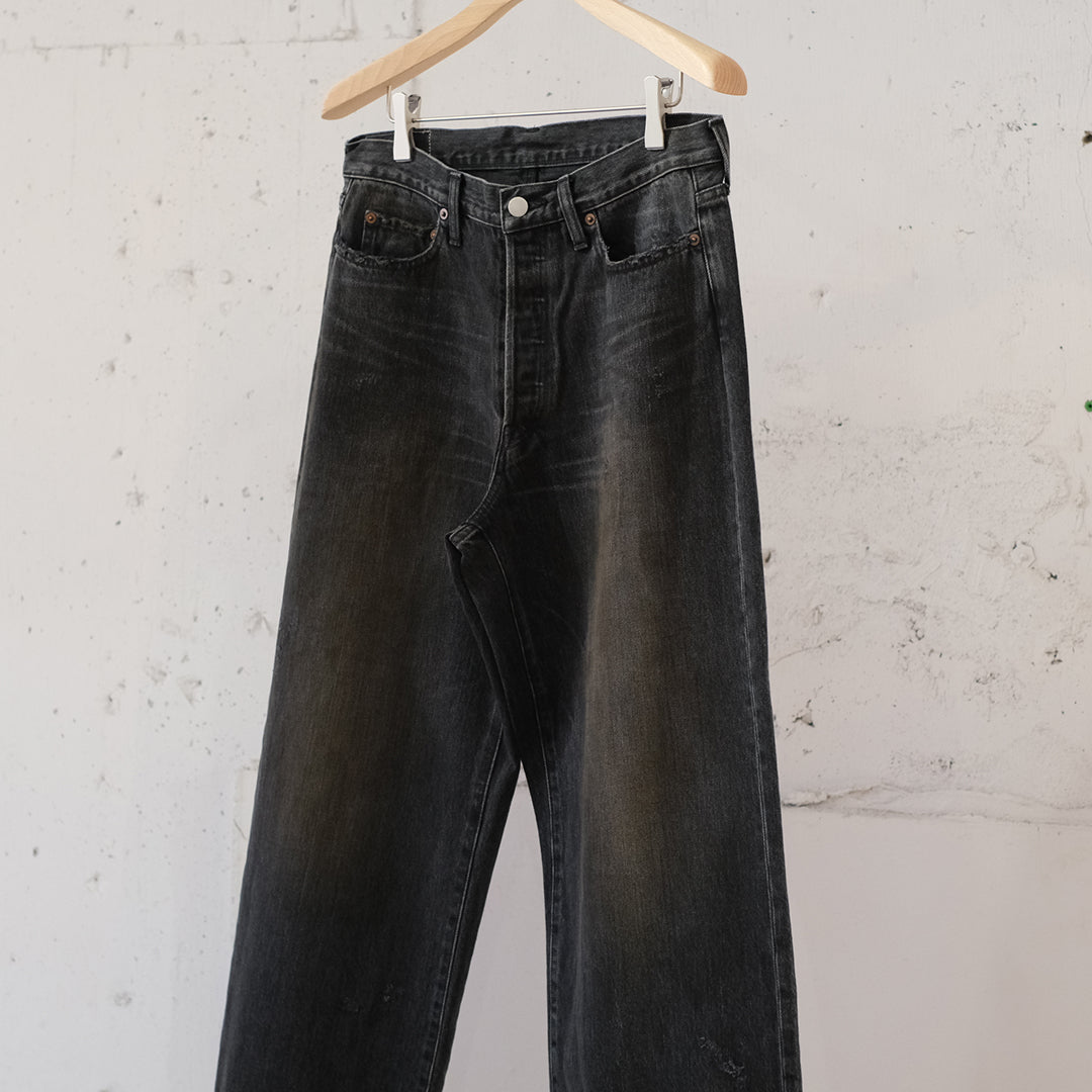 ssstein 25AWより、股上を浅めに設定しゆったりとしたストレートデニムが入荷しました。ストーンウォッシュ、ブリーチ、オーバーダイ、吹付け、手作業によるダメージ感等様々な加工過程を施し、奥行きのある表情が特徴的です。