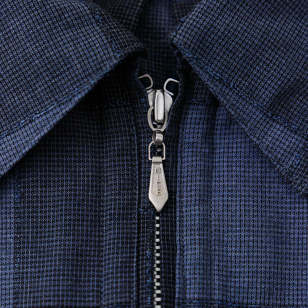 惜しまれながらも閉業してしまったイタリアのシャツ地メーカーから⼊⼿した、多彩なデッドストック⽣地を使⽤したロングジップのプルオーバーシャツ。