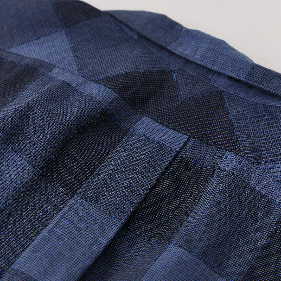 1940年代のドレスシャツのパターン構成をベースに、カジュアルに⼀枚でも着⽤できるよう再設計しました。全⼯程を⾃社⼯場で⾏っていた希少なメーカーの⽣地で、現在では再現が難しいクオリティ。デッドストックならではの⾊柄の妙と⽣地の⾵合いを存分に味わえる⼀着です。