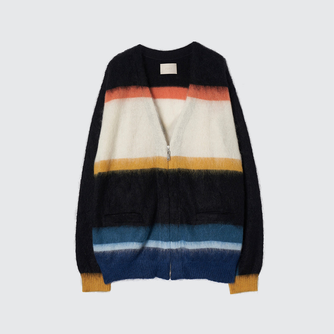 MOHAIR BORDER V-NECK ZIP CARDIGAN