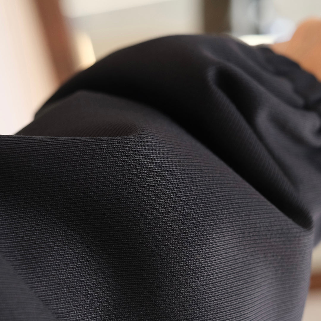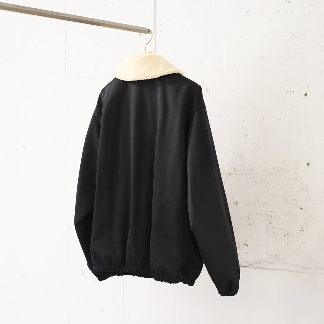 フライトジャケットのディテールをベースに素材を組み合わせながら、全体はミニマルな印象に仕上がるよう製作。表地はしなやかで美しい表情のウールカルゼ、襟にはシープムートン、襟裏・タブにはカウレザーを施しています。ジャケットのシルエットが綺麗に出るよう内側は極薄のキルティング仕様に。