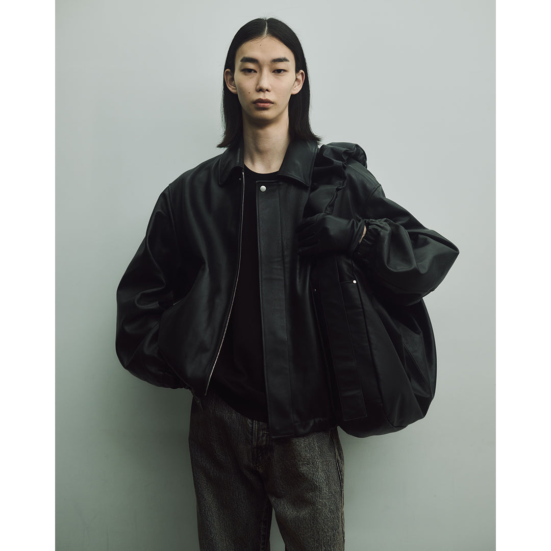 無機質なプロダクトを目指し、デイリーに使用出来るショルダーバッグをと製作を進めたショルダーバッグ。ショルダー内側にレザーベルトを施し、長さを調整することでショルダー部分にギャザーが寄るように設計。