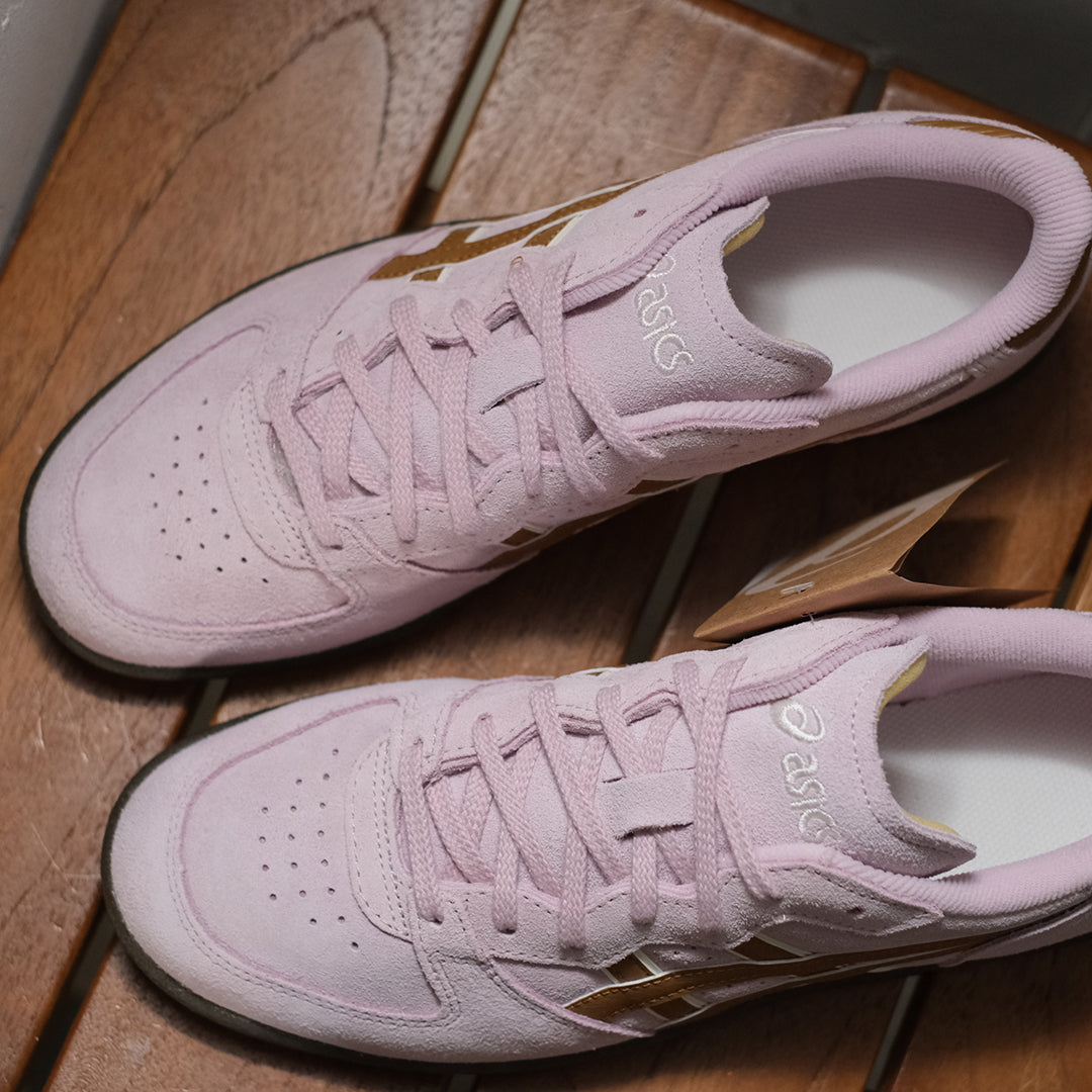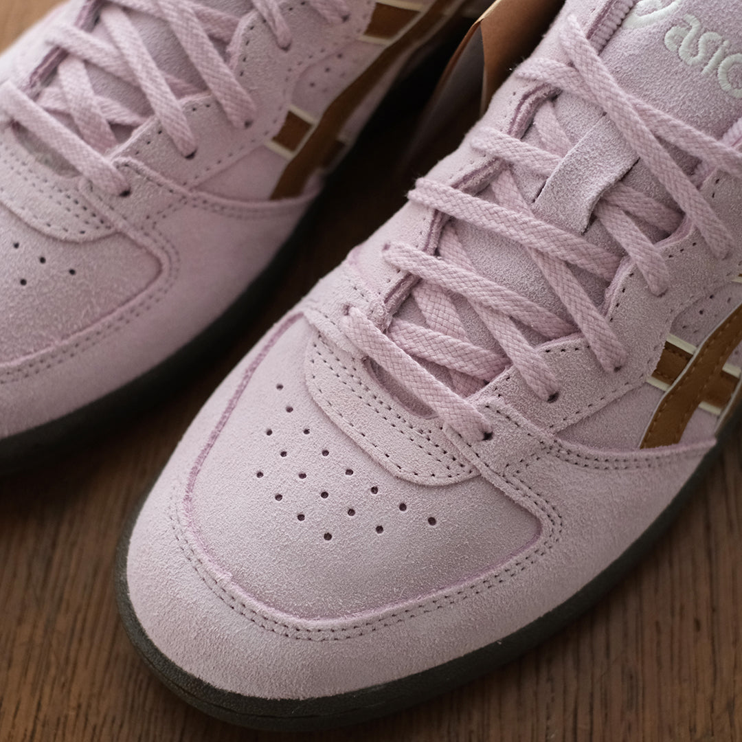 春の訪れを感じさせる淡いピンクのスウェードでアッパー全体を覆ったBARELY ROSE/CARAMEL。
