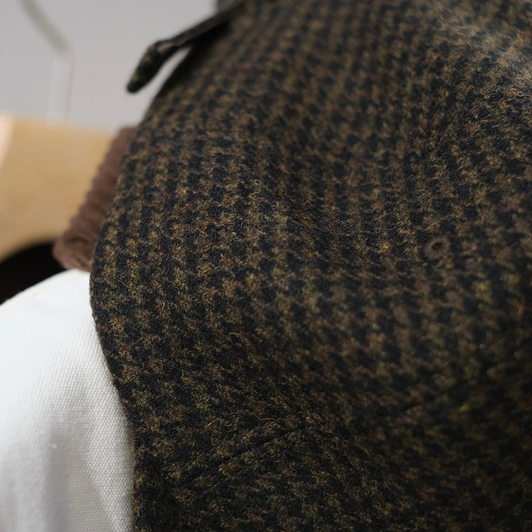 通常の羊毛と、より太く粗い羊毛を混ぜることによりシェットランドウールのような風合いに仕上げています。柔らかい手触りと適度なボリューム感があり、シェットランド調の温かみと千鳥格子のクラシカルな外観は秋冬のスタイルのアクセントとして効果的です。
