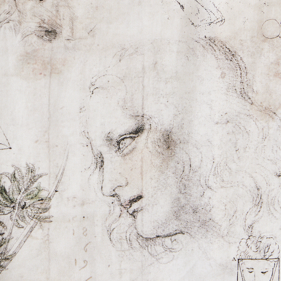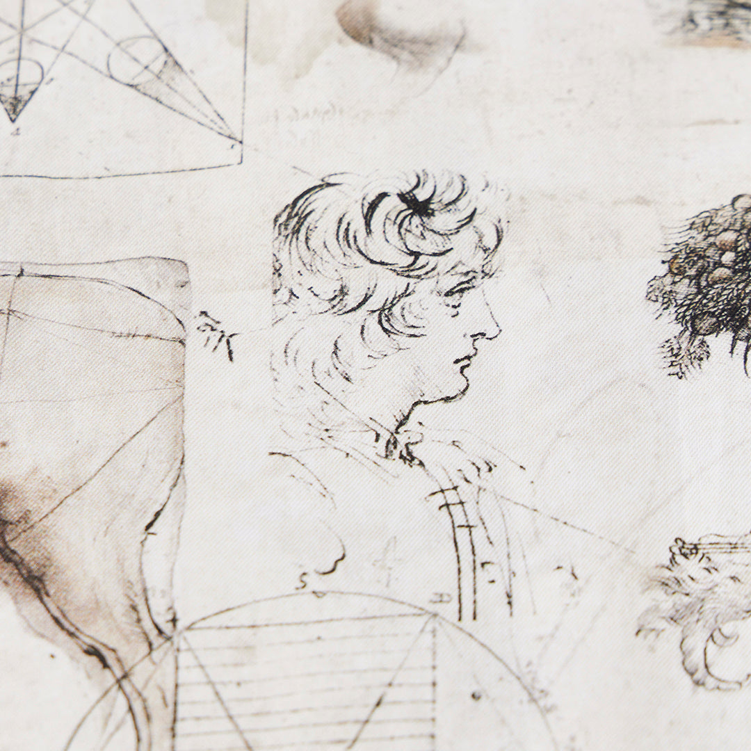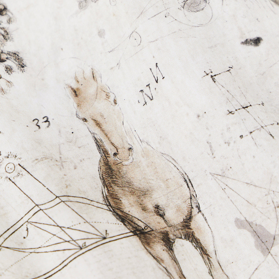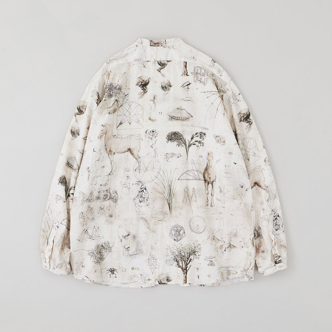 レオナルド・ダ・ヴィンチをインスピレーション源に作成したオリジナル柄をプリントしたビエラ素材のナローカラーシャツジャケット。