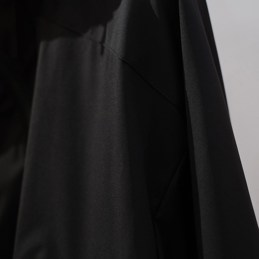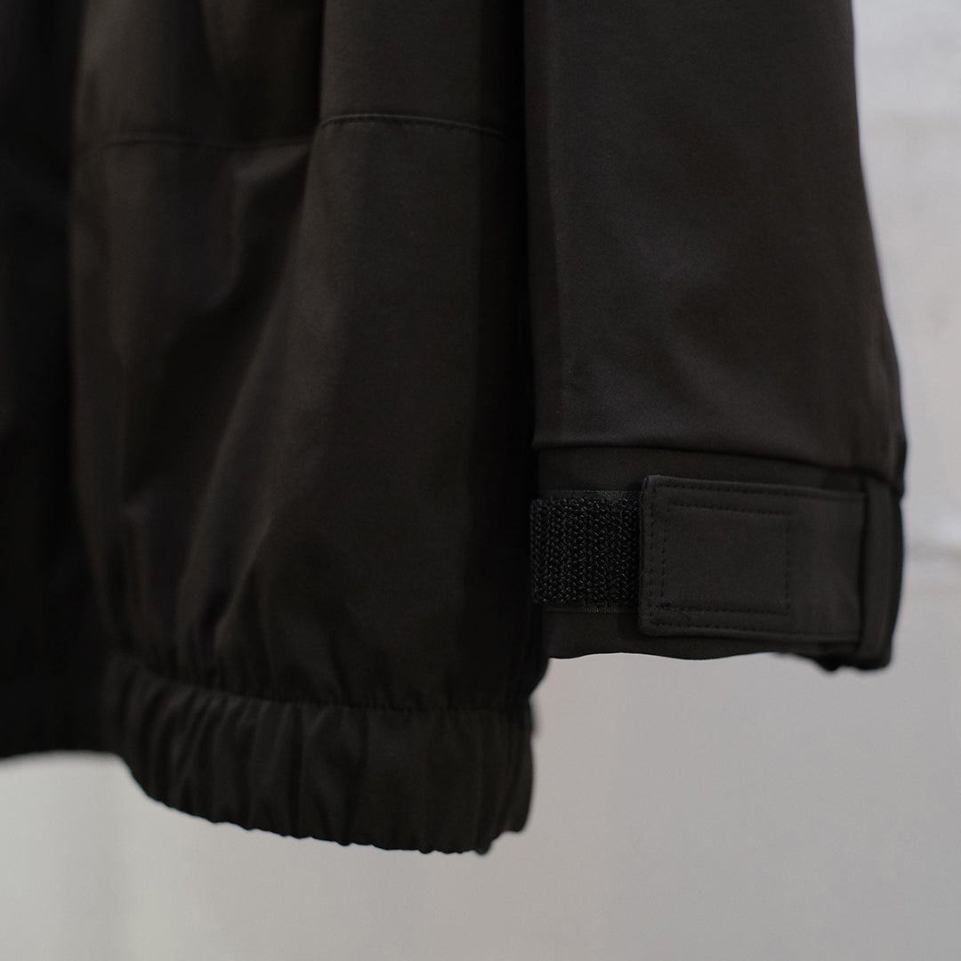 OLMETEX社の3レイヤーボンディング生地を使用したソフトシェルジャケット。無機質な生地の表情と、首元に2列配置したファスナーが特徴。撥水/防水/防風性を備え、ソフトな風合いで伸縮性もあるため日常の様々な場面で活躍してくれそうな一着。